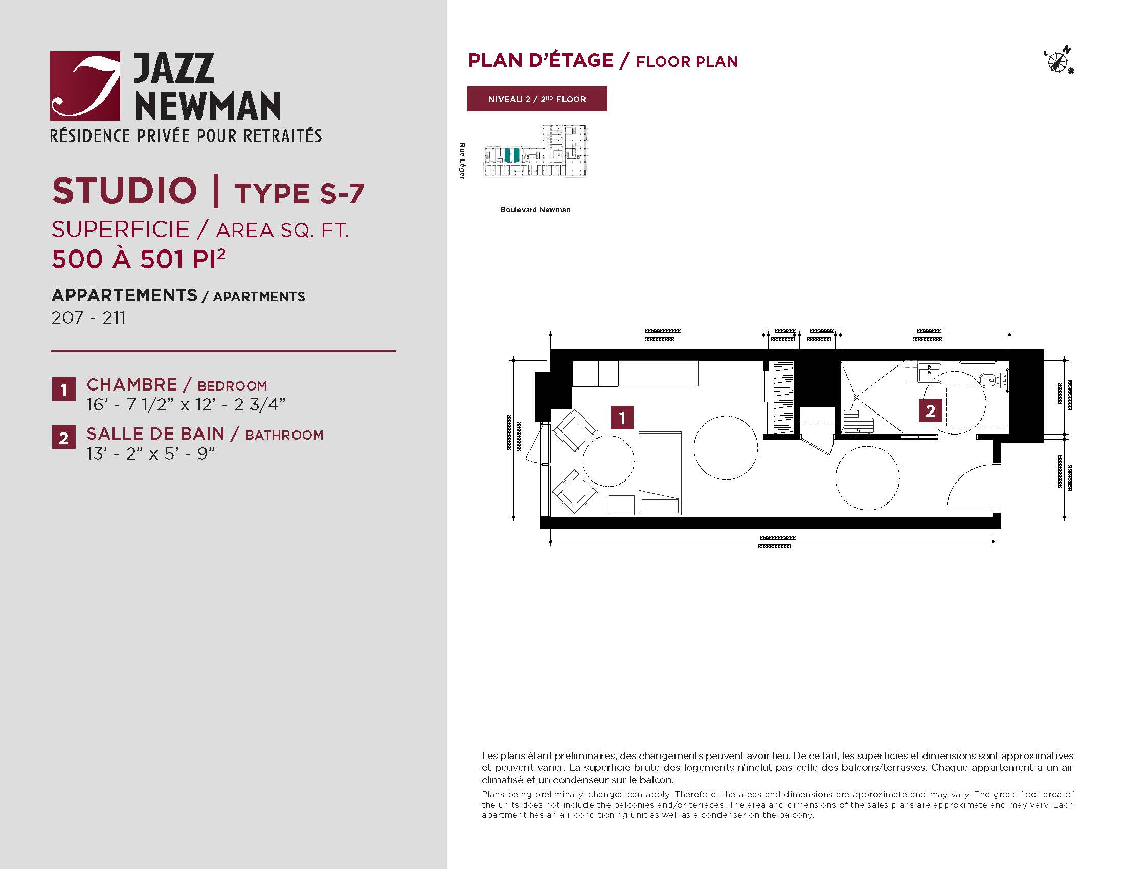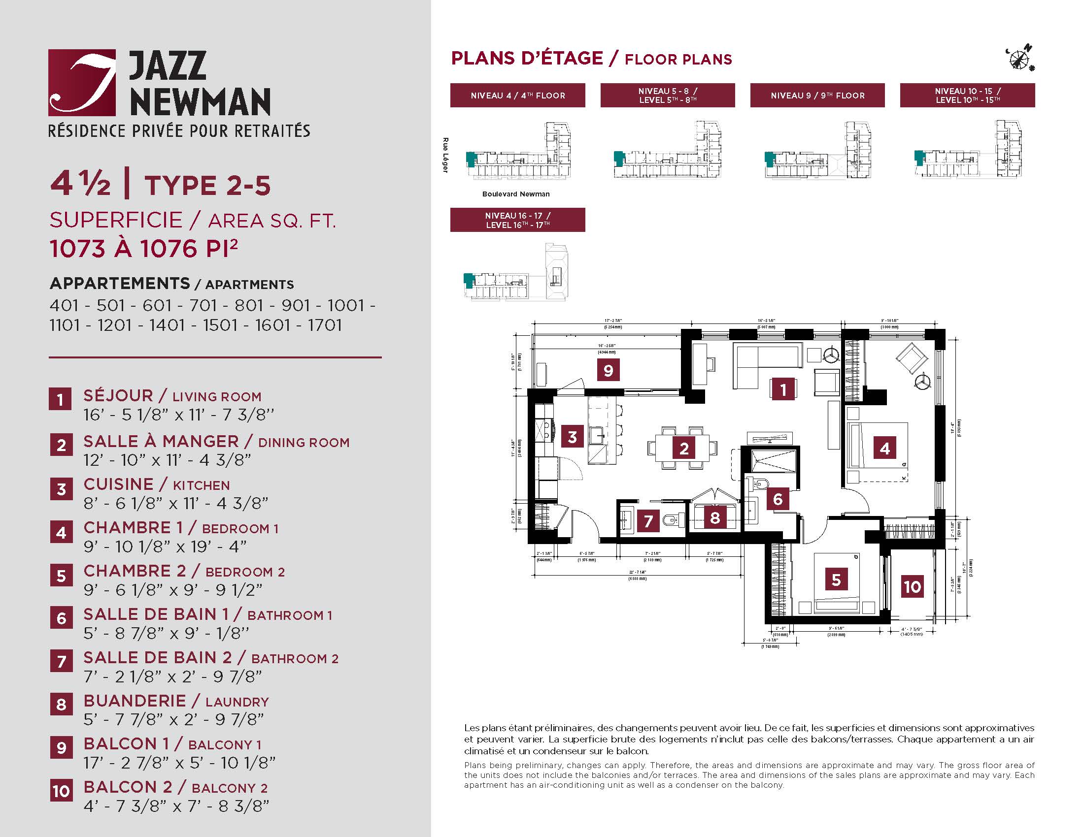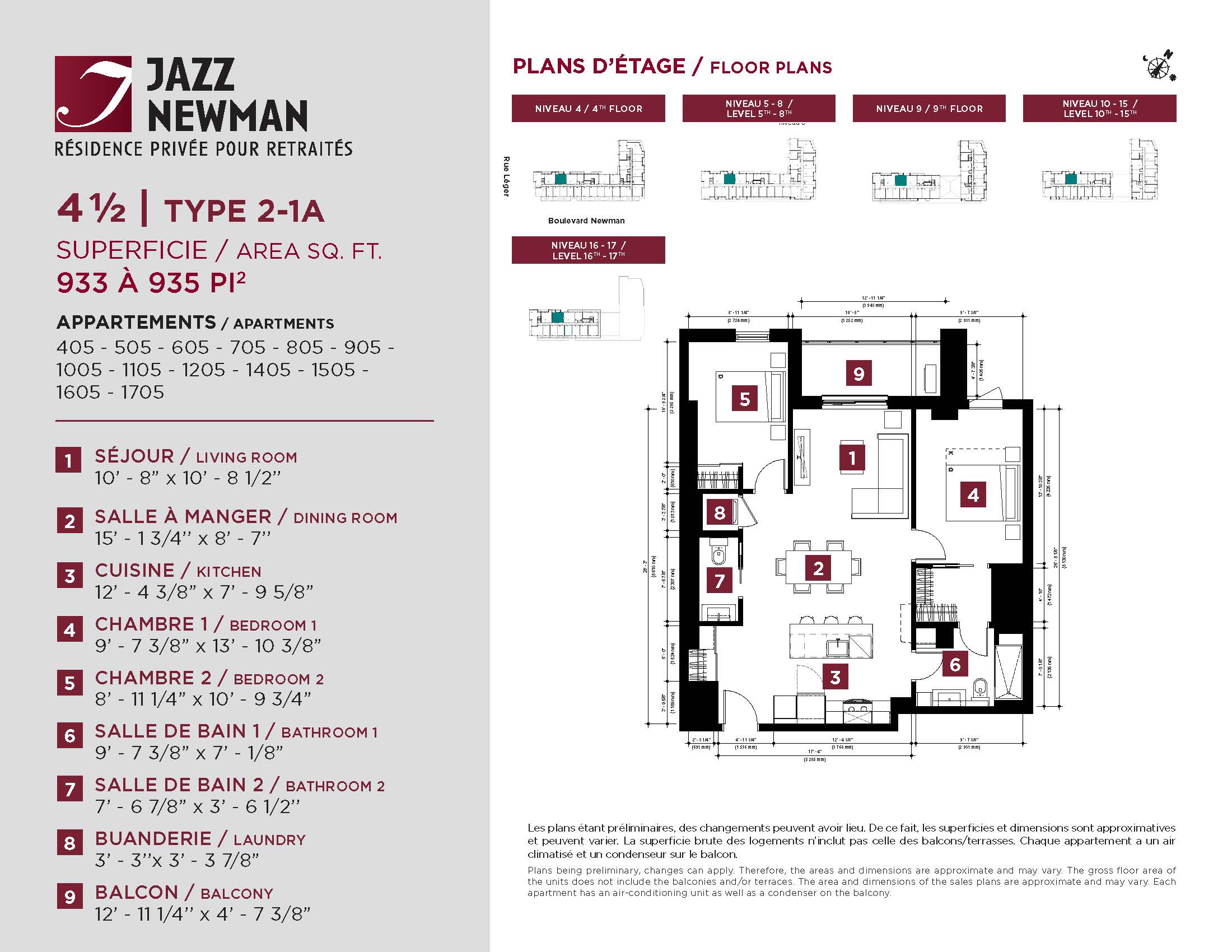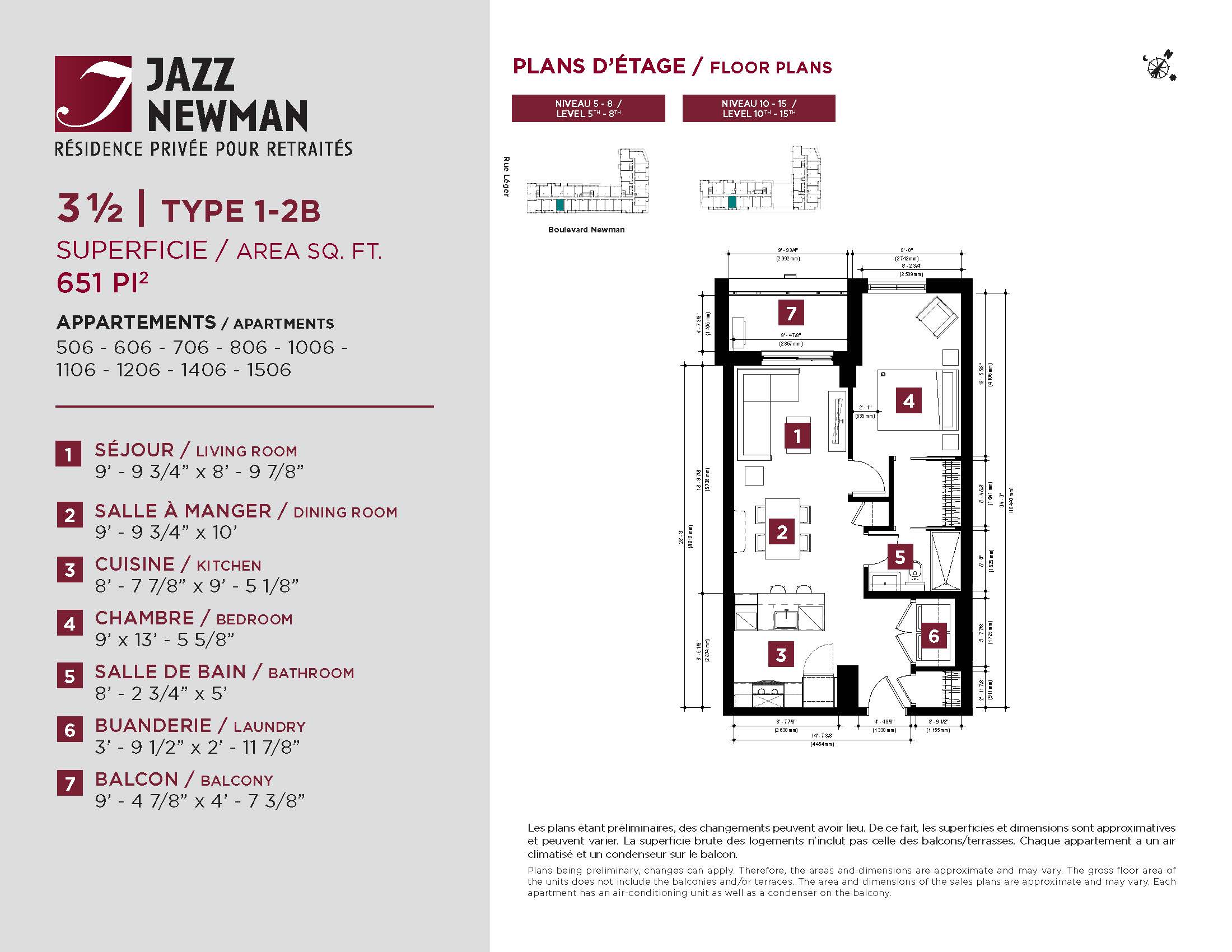 * Availability of apartments to be confirmed with your rental advisor. Care units available. Prices may be subject to change without notice. Apartments eligible for the tax credit for home support offered by Revenu Québec. Additional charges apply to certain apartments, where the addition of services is mandatory.