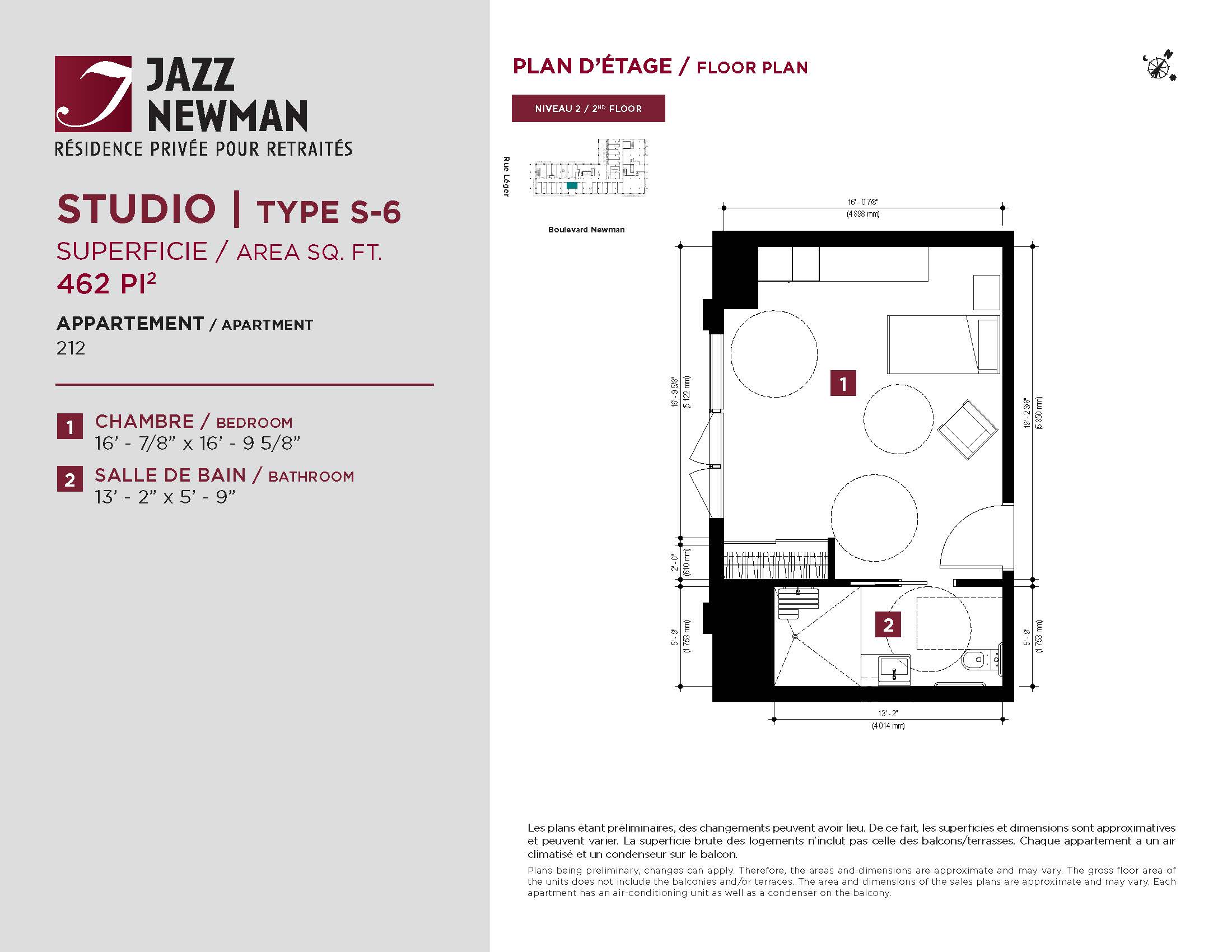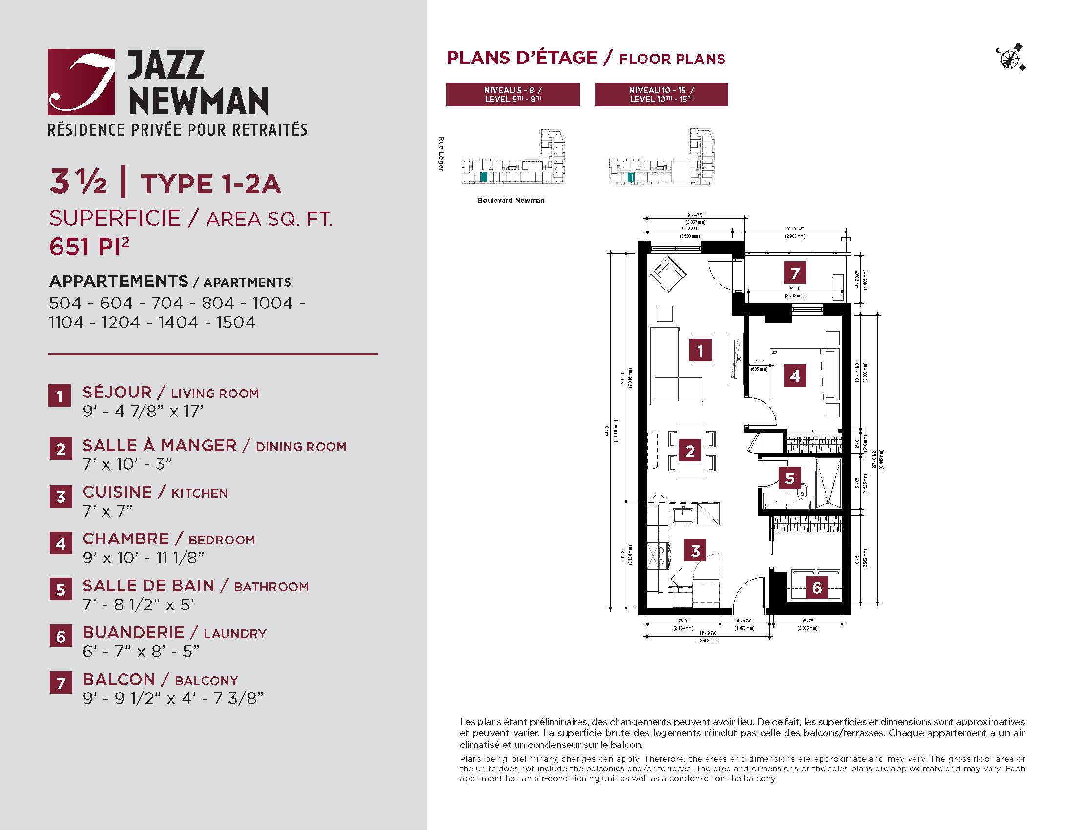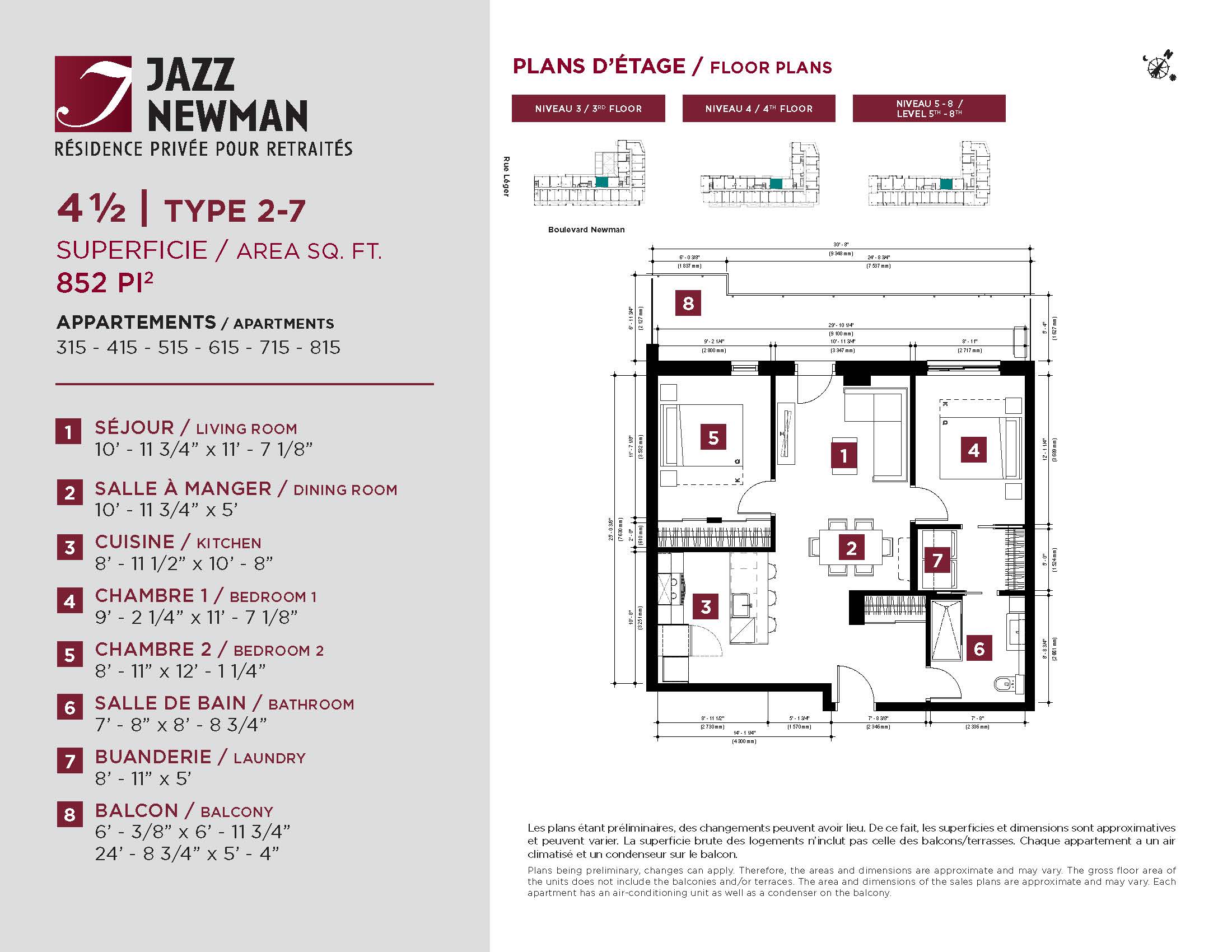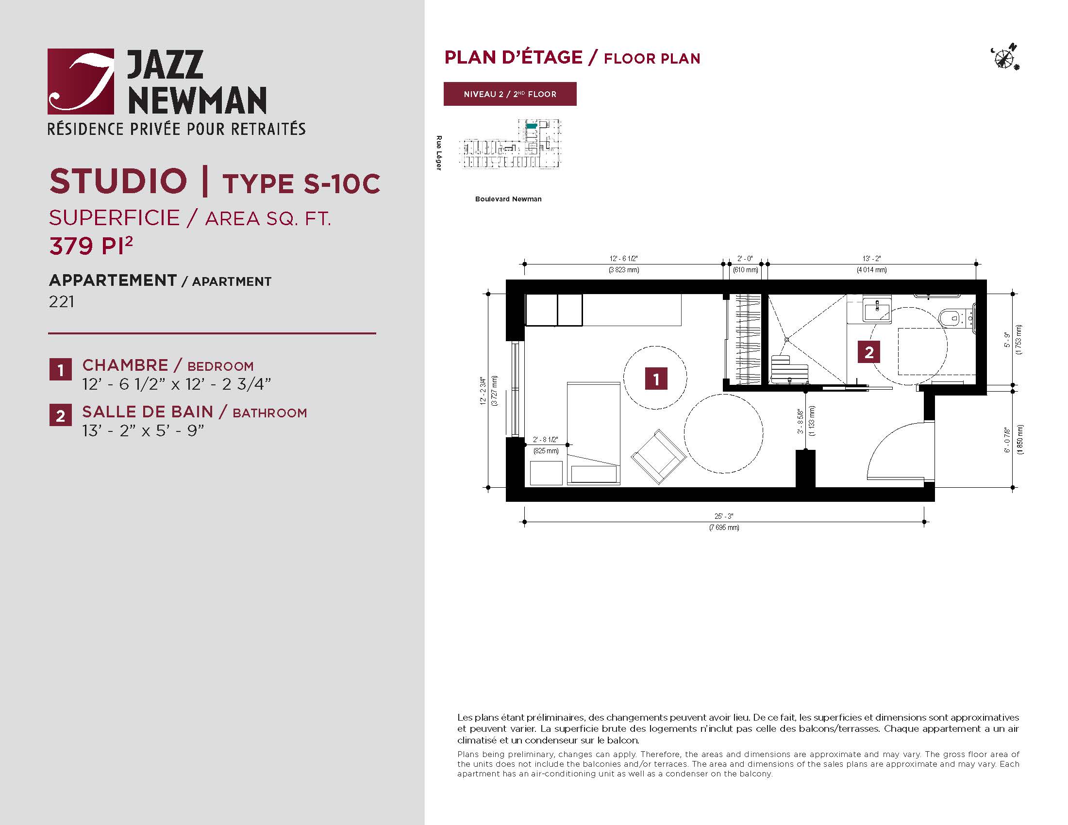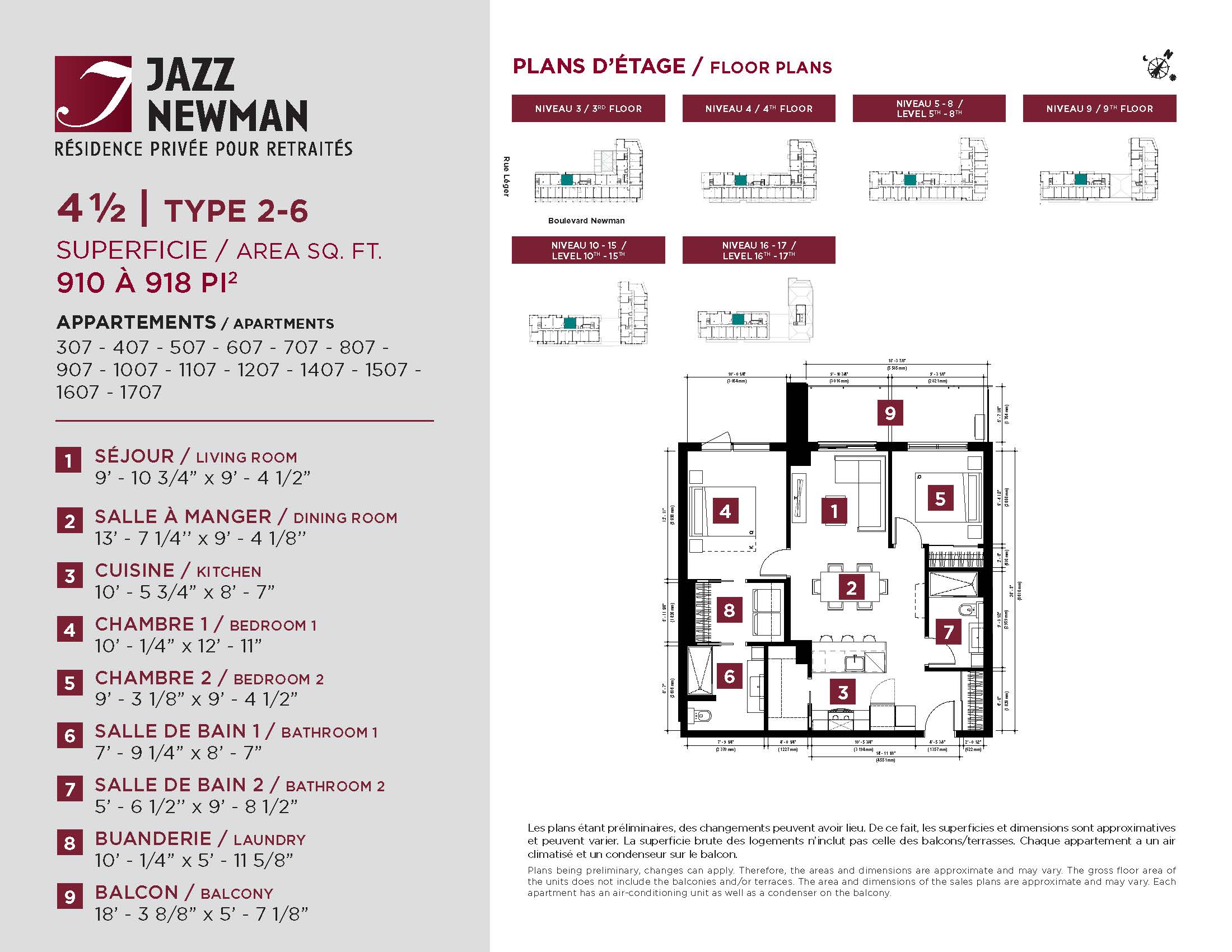 * Availability of apartments to be confirmed with your rental advisor. Care units available. Prices may be subject to change without notice. Apartments eligible for the tax credit for home support offered by Revenu Québec. Additional charges apply to certain apartments, where the addition of services is mandatory.