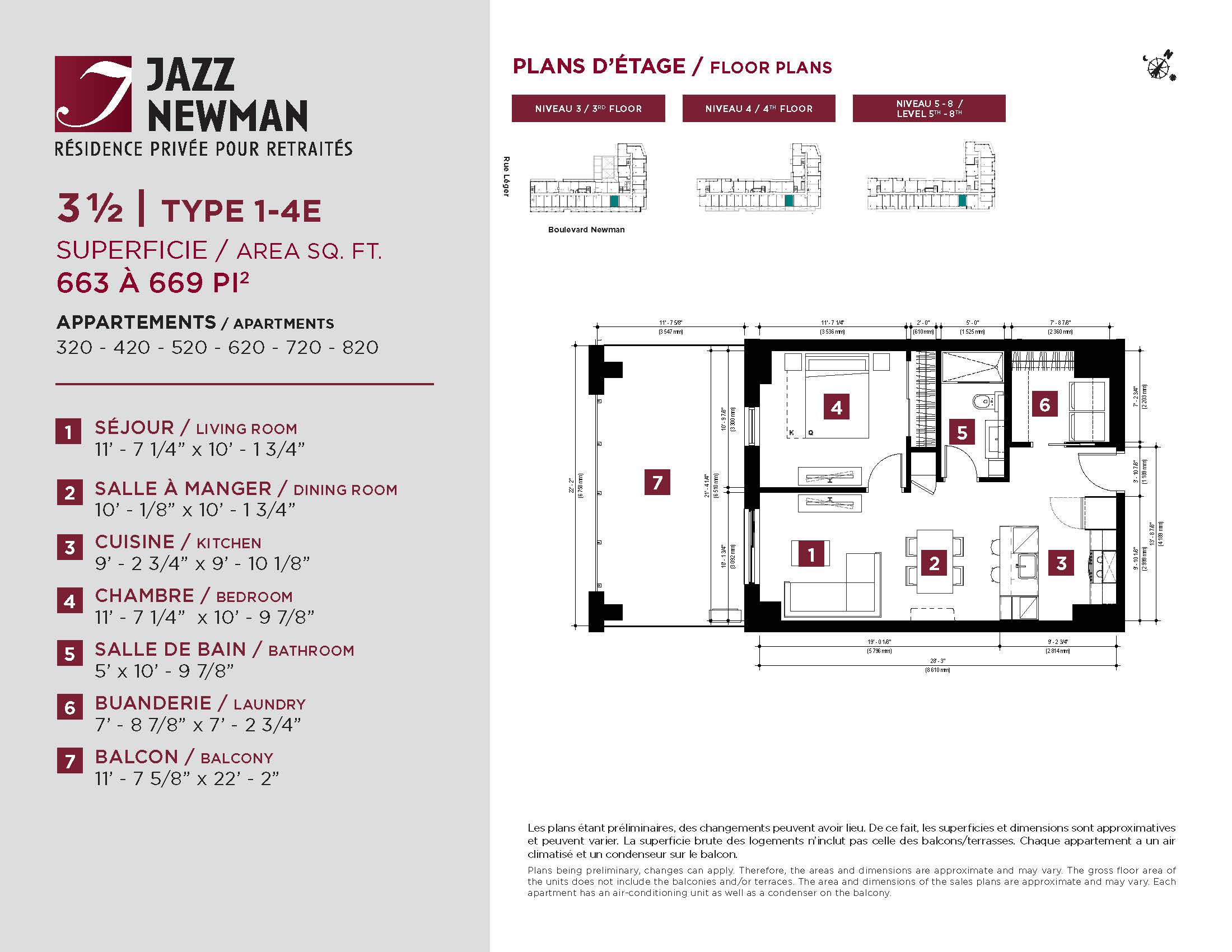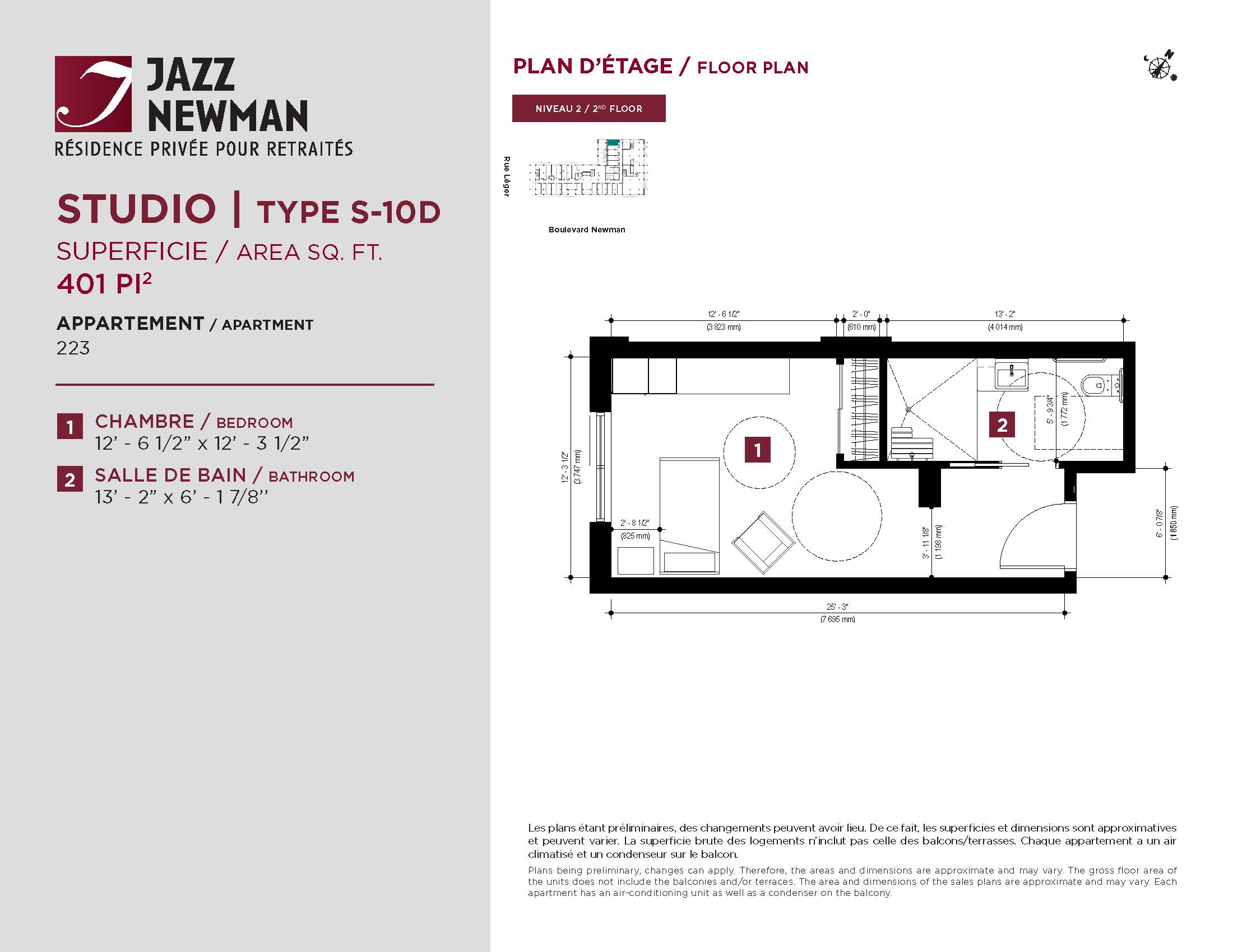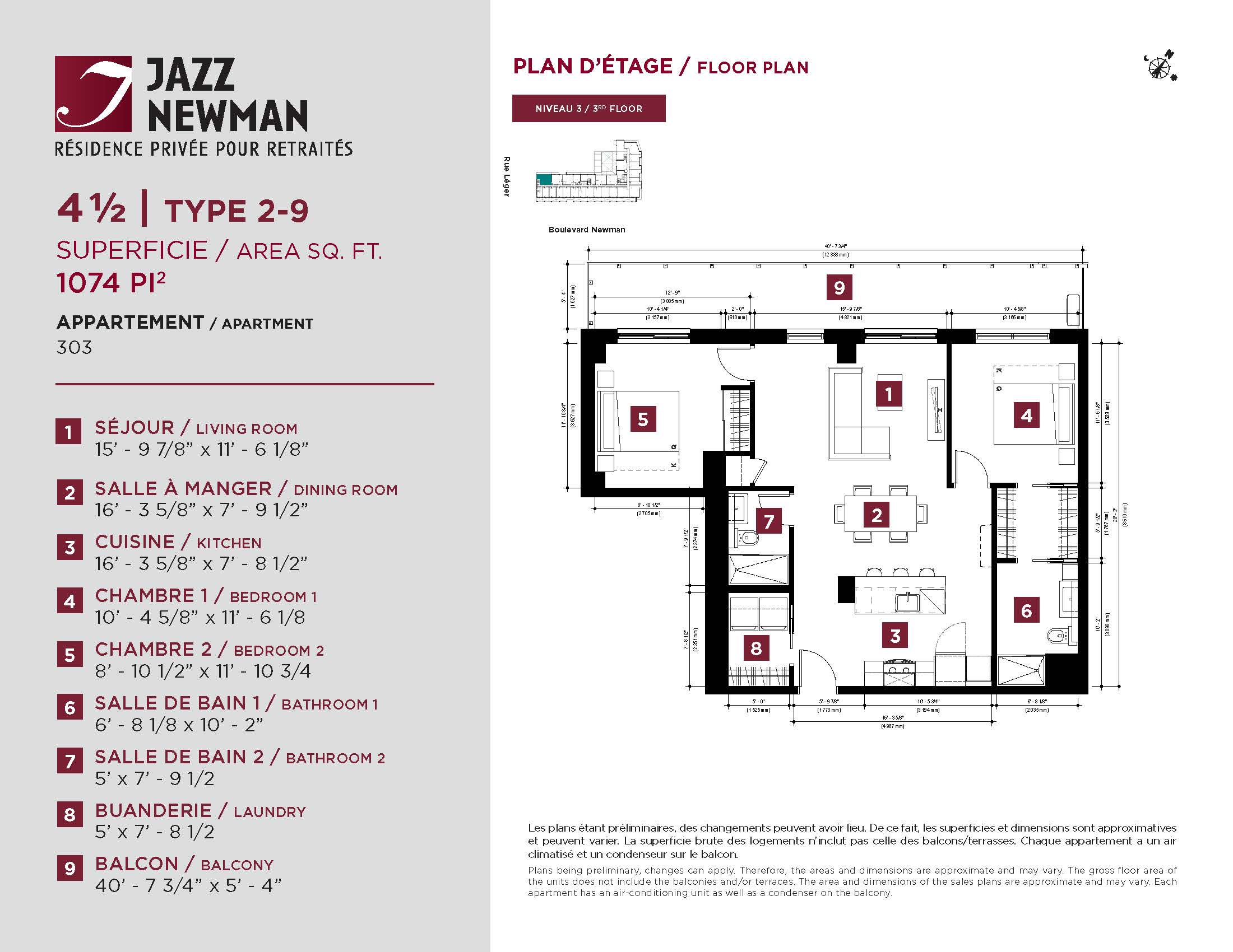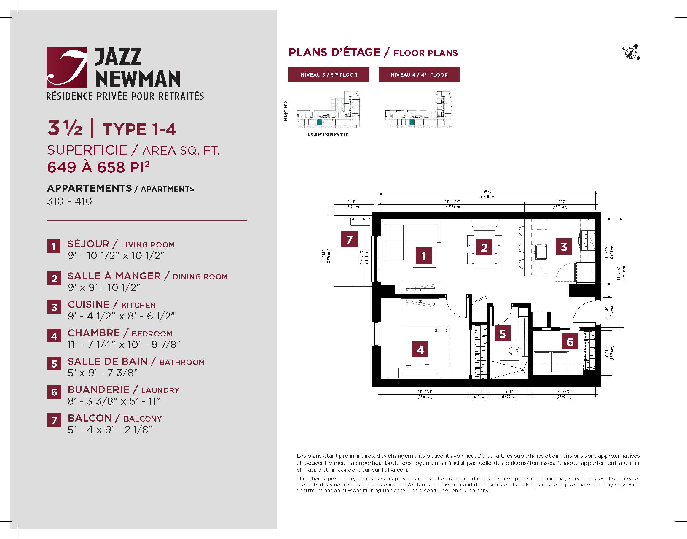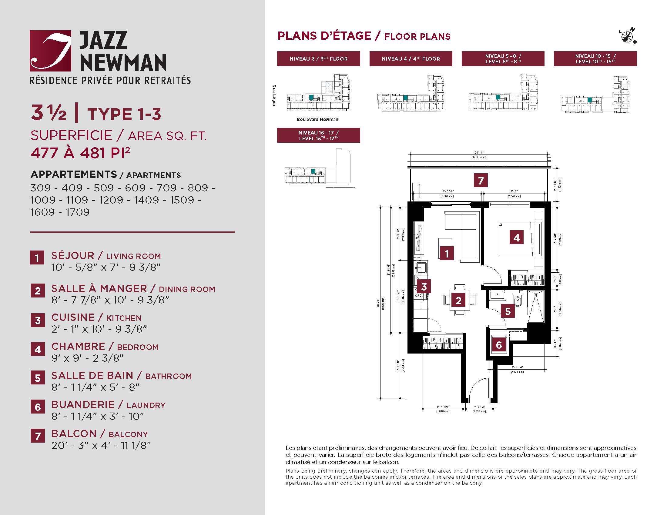 * Availability of apartments to be confirmed with your rental advisor. Care units available. Prices may be subject to change without notice. Apartments eligible for the tax credit for home support offered by Revenu Québec. Additional charges apply to certain apartments, where the addition of services is mandatory.