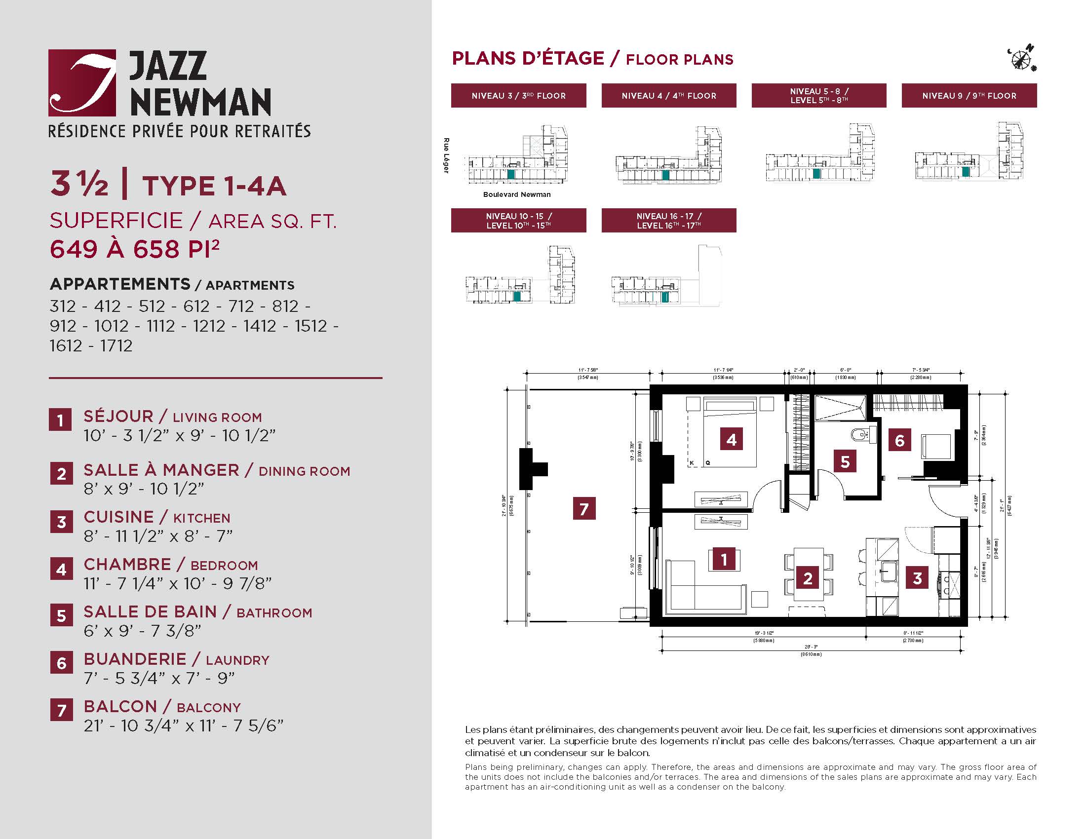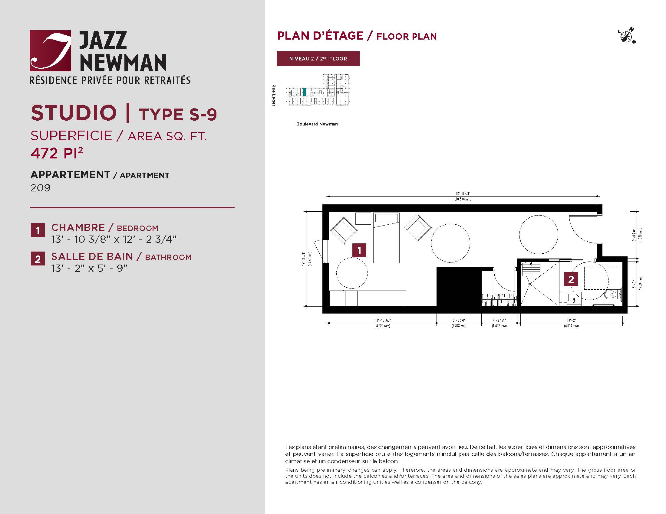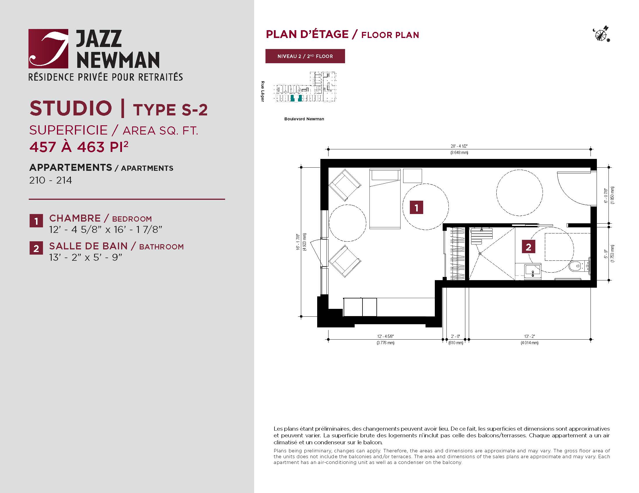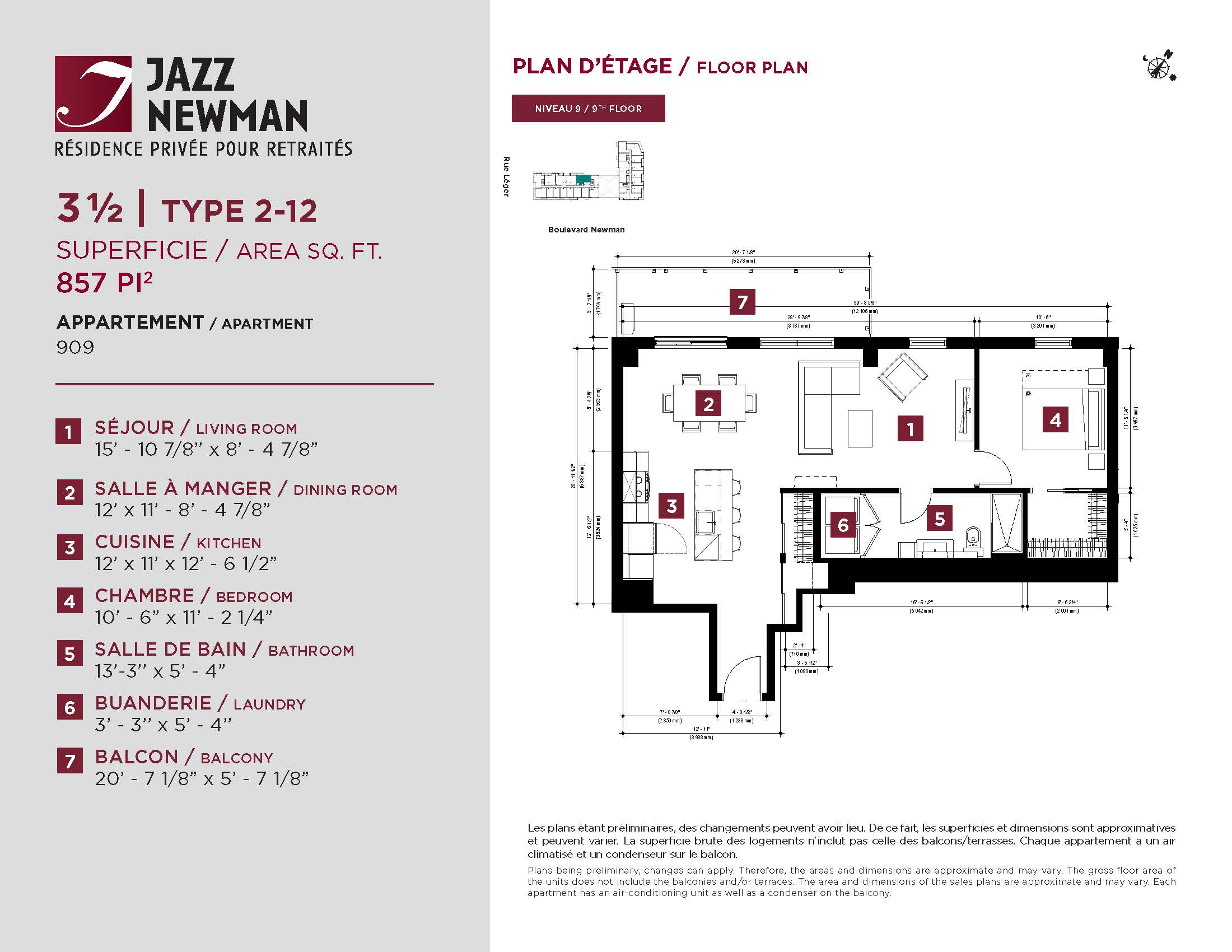 * Availability of apartments to be confirmed with your rental advisor. Care units available. Prices may be subject to change without notice. Apartments eligible for the tax credit for home support offered by Revenu Québec. Additional charges apply to certain apartments, where the addition of services is mandatory.