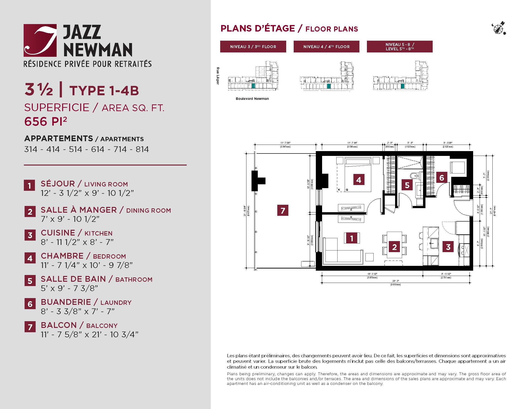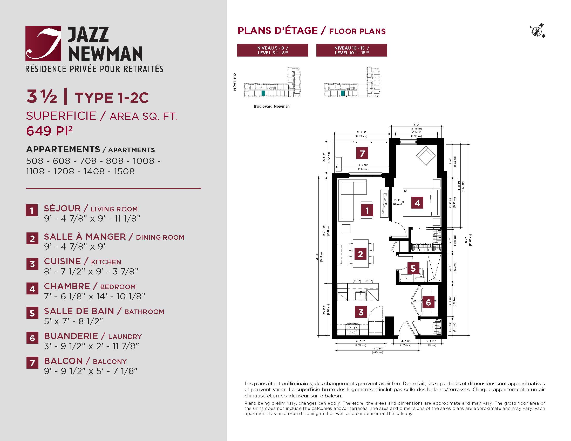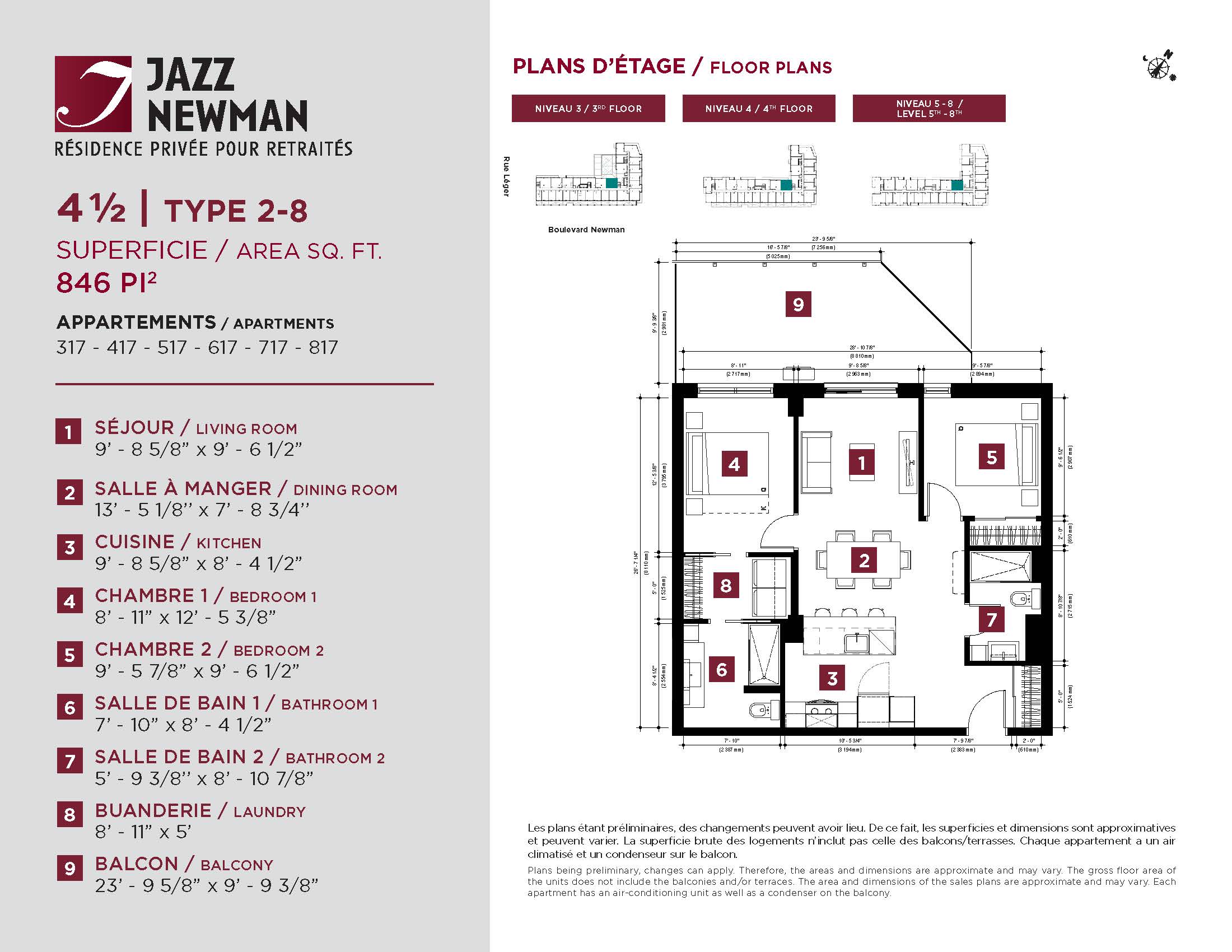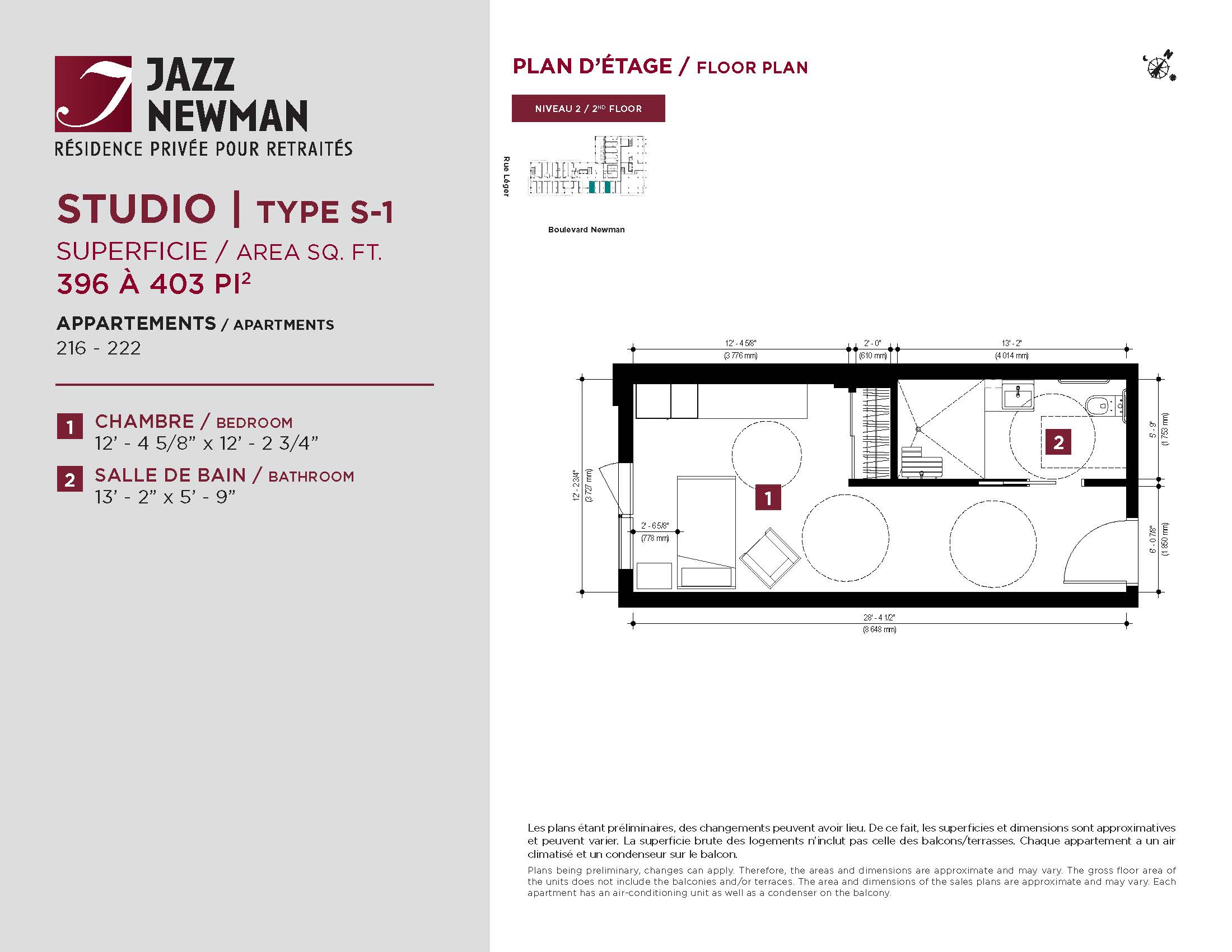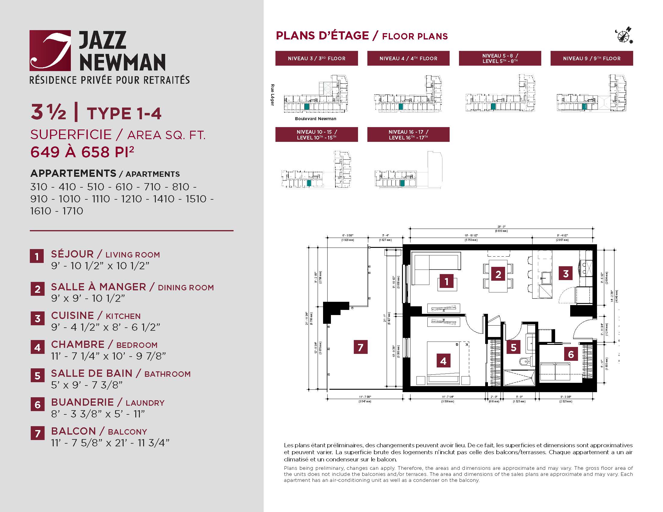 * Availability of apartments to be confirmed with your rental advisor. Care units available. Prices may be subject to change without notice. Apartments eligible for the tax credit for home support offered by Revenu Québec. Additional charges apply to certain apartments, where the addition of services is mandatory.