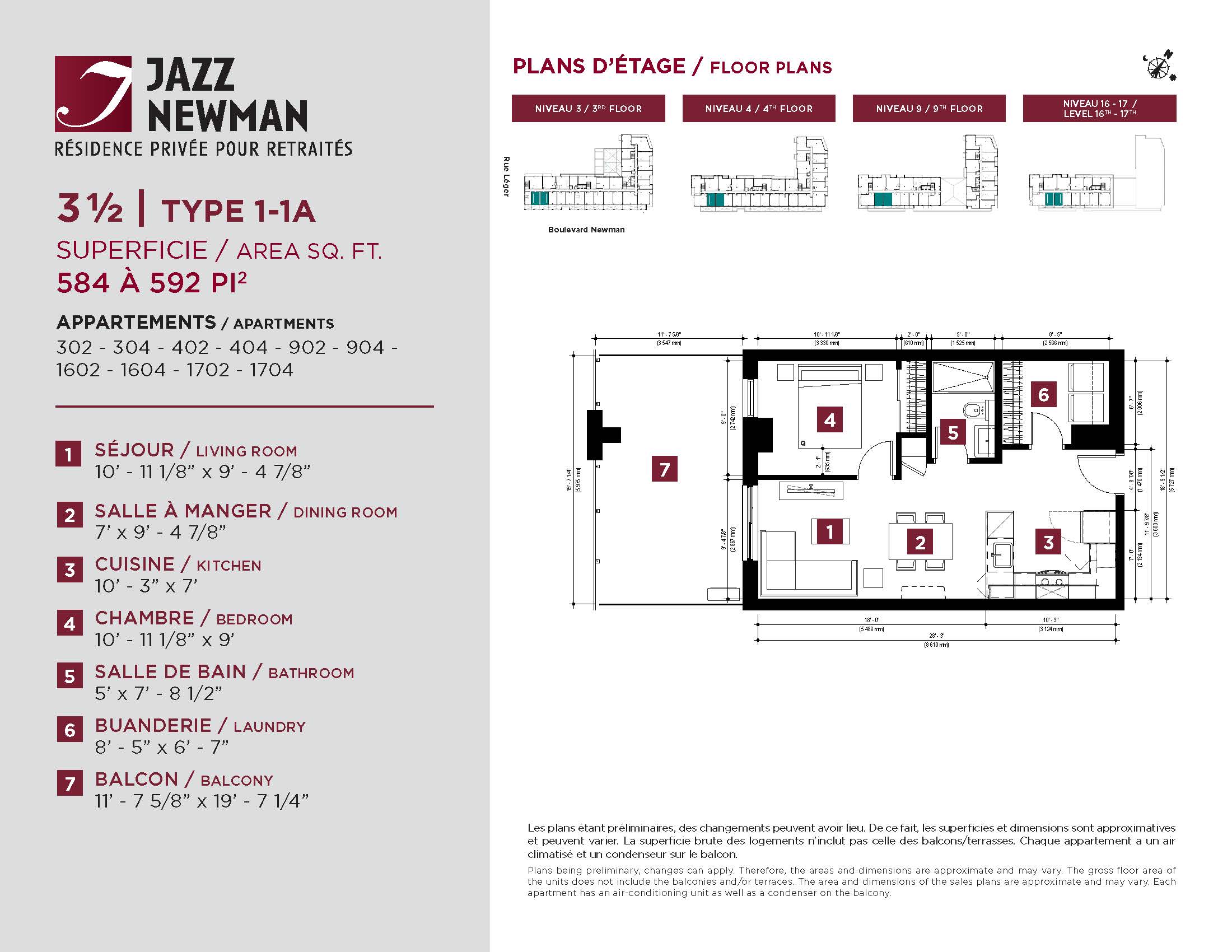 Jazz Newman is exceptionally located, near all the necessary services. Enjoy the beautiful Angrignon Park and take advantage of the Carrefour Angrignon nearby. A wide range of restaurants, shops and entertainment options is at your disposal.