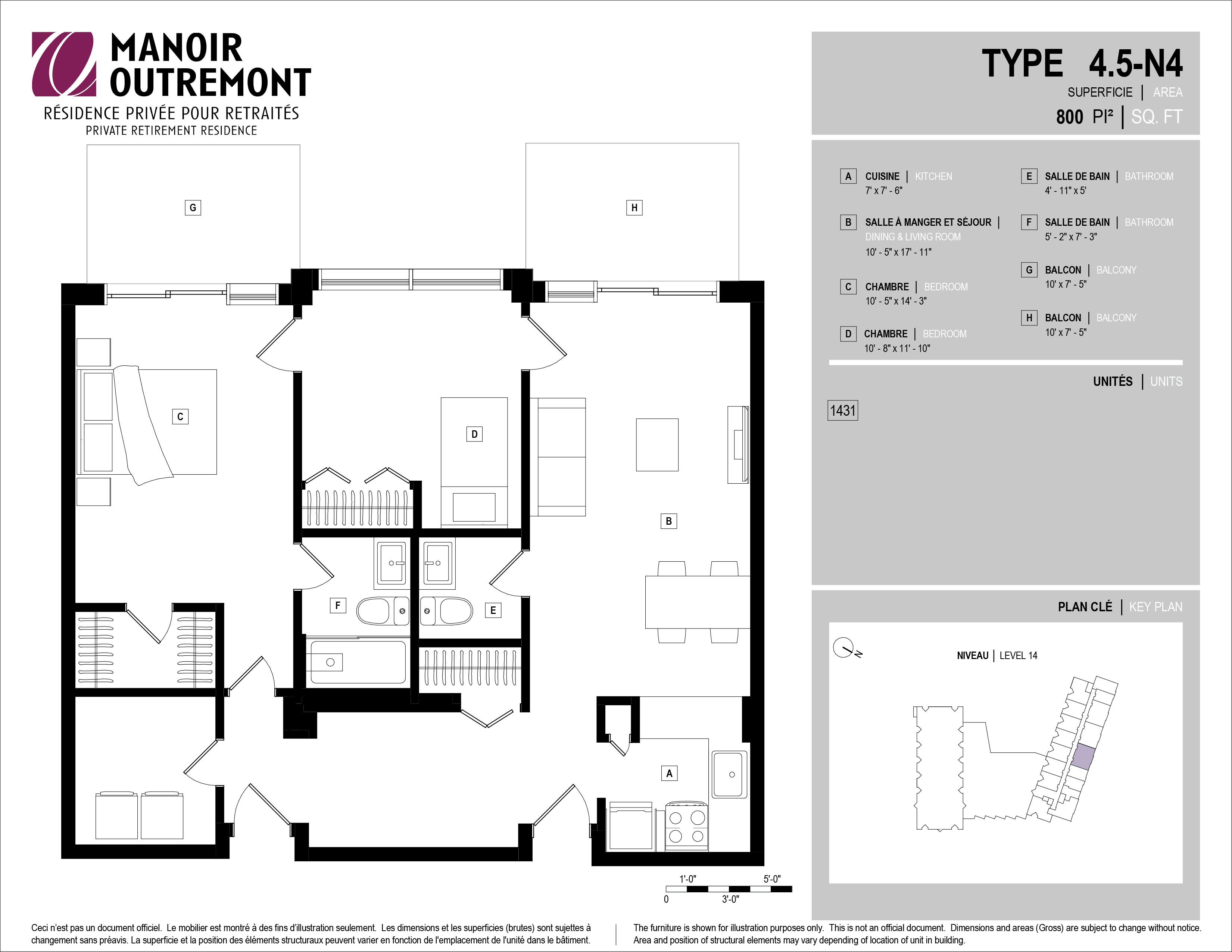 * Availability of apartments to be confirmed with your rental advisor. Care units available. Prices may be subject to change without notice. Apartments eligible for the tax credit for home support offered by Revenu Québec. Additional charges apply to certain apartments, where the addition of services is mandatory.